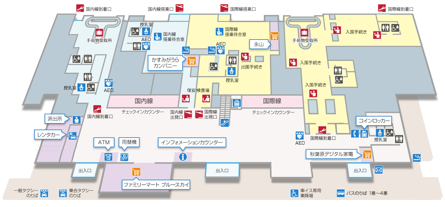茨城空港:Ibaraki Airport 営業時間:6:00~:30 無料WIFI:180分 茨城空港は、のとても小さな空港で、1階と2階しかありません。 茨城空港ターミナル内は禁煙で、1階の屋外と待合室に喫煙所があります。 茨城空港から300m先に、道の駅ならぬそらの駅「 そBus Stop Ibaraki~いばらき路線バス案内所 6/27 : PDF版「関鉄水戸営業所管内路線図」を更新 6/27 : 7/1境町~東京駅線運行開始 6/27 : 更新行方市営路線バス 6/13 : PDF版「行方市内バス路線図」をリリース 第1ターミナルは成田空港駅でお降り下さい。 駐車場はP1、P5をご利用ください。 第2ターミナルへは空港第2ビル駅でお降り下さい。 駐車場はP2、P3をご利用ください。